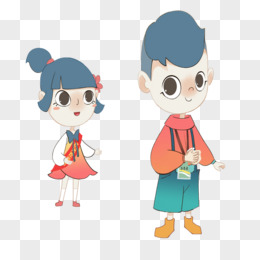 手绘卡通小朋友陪妈妈晒衣服免抠元素