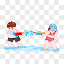 卡通小朋友们一起打水仗素材