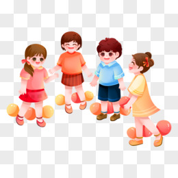 卡通手绘小伙伴一起玩踩气球素材