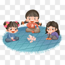 卡通手绘过年三个小朋友一起打牌素材