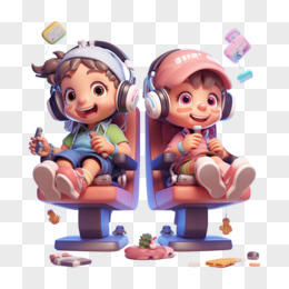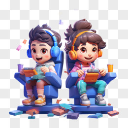 卡通3D小朋友一起打游戏元素