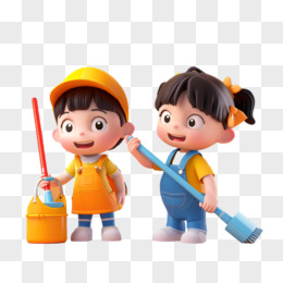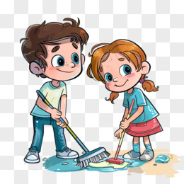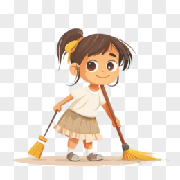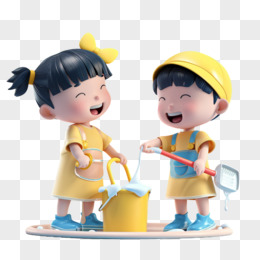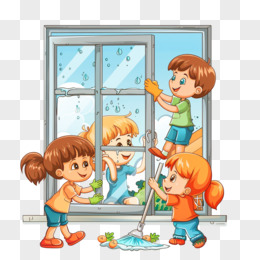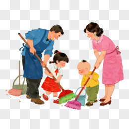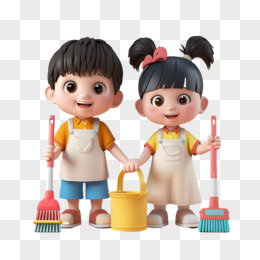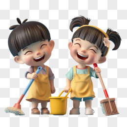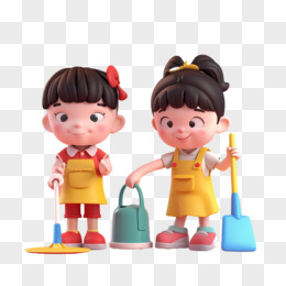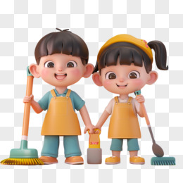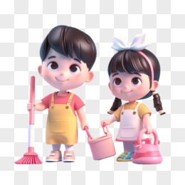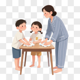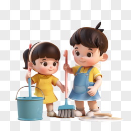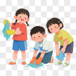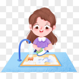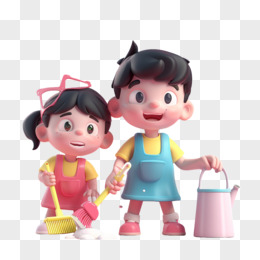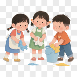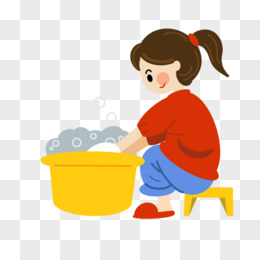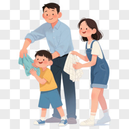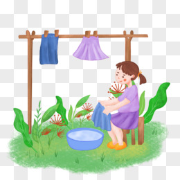 手绘卡通小朋友陪妈妈晒衣服免抠元素