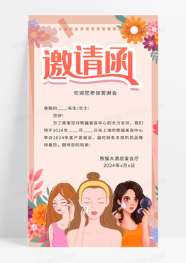 粉色小清新风格美容院宣传邀请函