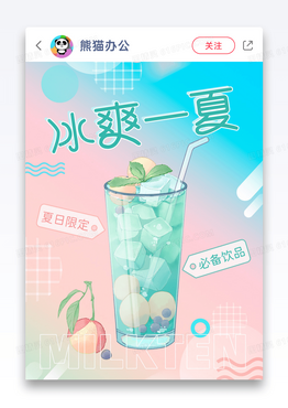 夏日清新渐变色几何背景冰爽一夏饮料果汁小红书封面图片