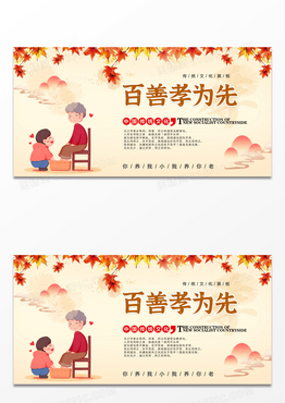 复古古风百善孝为先中国传统文化展板