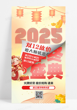 暖色渐变翻页效果2025年蛇年年终盛典年终钜惠海报设计