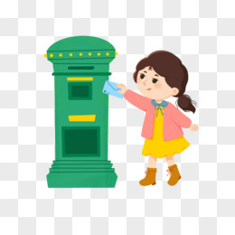 小女孩寄信邮箱人物形象免抠元素