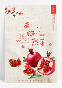 水墨画秋季扶着大石榴的小女孩免抠元素