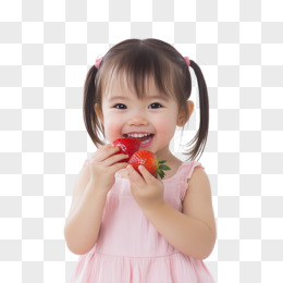 插画风吃水果狐狸小熊吃草莓免抠元素