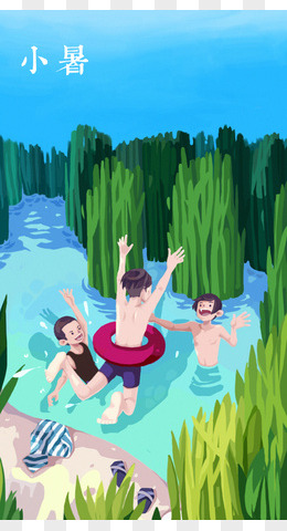 卡通小女孩吃西瓜吹风扇遇见小暑合成插画元素