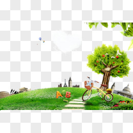 卡通清新草地小树