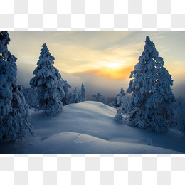 夕阳下的雪地小树