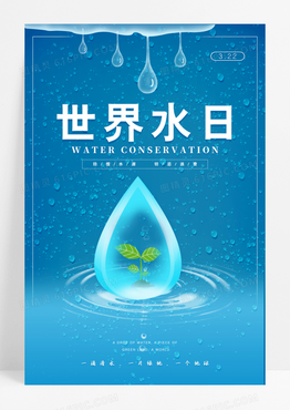 蓝色小清新世界水日水滴水珠宣传海报设计