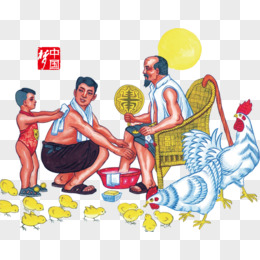 手绘卡通儿子陪伴孝顺老人免抠素材