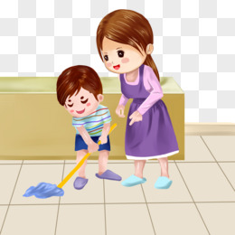 手绘卡通孝顺母亲捶背素材素材