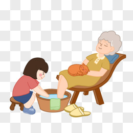 手绘卡通小朋友给奶奶洗脚免抠元素