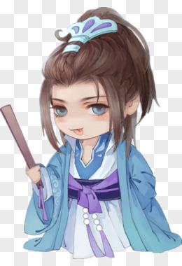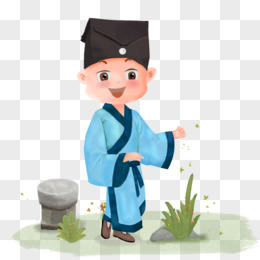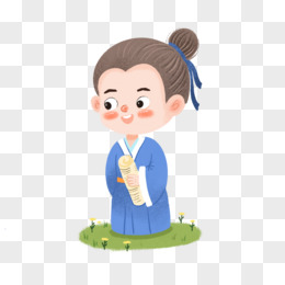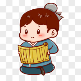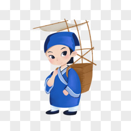 手绘可爱卡通Q版背着书箱的小小书生元素
