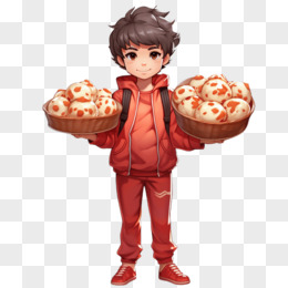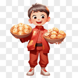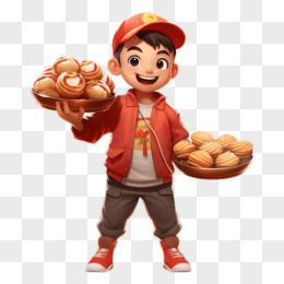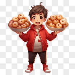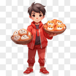 卡通风格男孩手举美食免抠元素