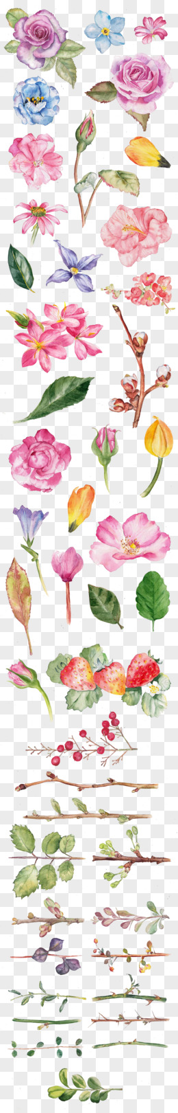 手绘花丛鲜花蘑菇绿叶免抠装饰元素