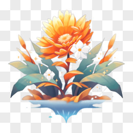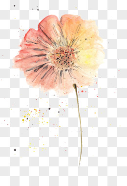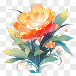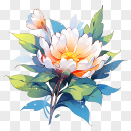 手绘风格的可爱小猫用鼻子闻盛开的花朵的免抠元素