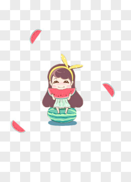卡通手绘免抠吃西瓜的女孩素材