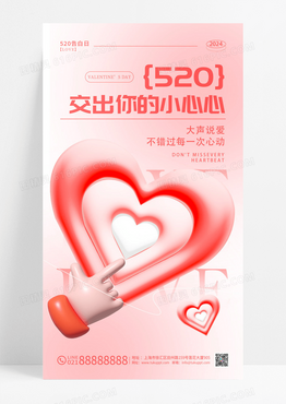 粉色色膨胀风520膨胀风520情人节手机宣传海报