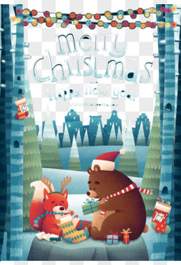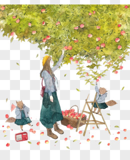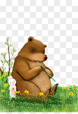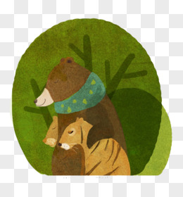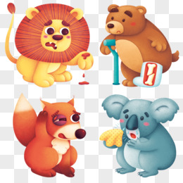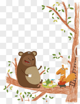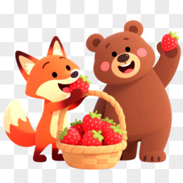 插画风吃水果狐狸小熊吃草莓免抠元素