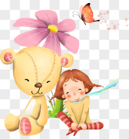 卡通玩具熊与卡通女孩