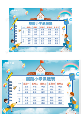 可爱卡通小学课程表