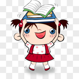 卡通手绘风格背着书包上学的女小学生免抠元素