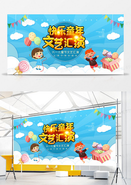 卡通手绘快乐童年文艺汇演六一儿童节晚会宣传展板
