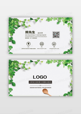小清新绿叶养生商务名片设计