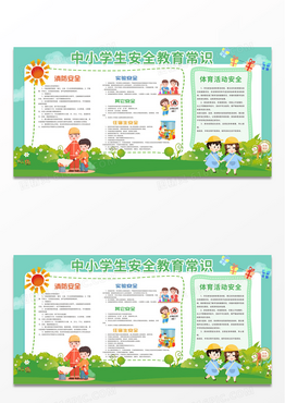 绿色简约卡通中小学安全教育日全国中小学生安全教育常识校园安全教育宣传栏展板
