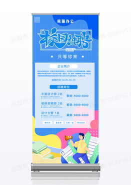 蓝色简约扁平化校园招聘只等你来校园招聘展架易拉宝校园招聘易拉宝展架