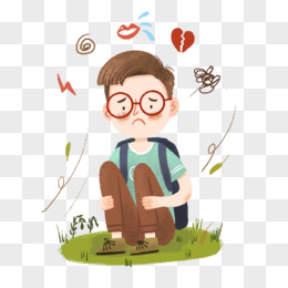 手绘卡通伤心难过的男孩免抠元素