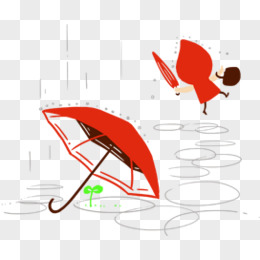 手绘卡通红色小伞元素