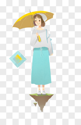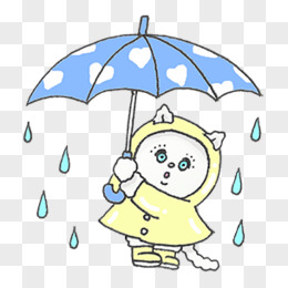 卡通手绘细雨绵绵女孩撑伞场景元素