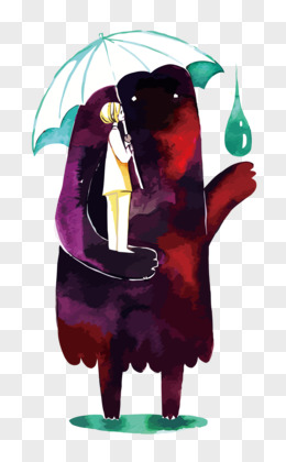 矢量下雨天和小怪兽