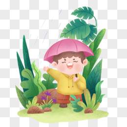卡通手绘雨天男孩撑伞元素
