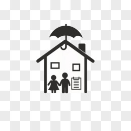 极简线条两个小人和保险单站在打着伞的房屋下免抠元素