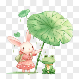 插画风荷叶小兔免抠素材