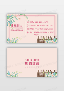 小清新植物简约栅栏文化教育名片模板