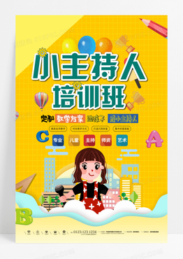 卡通风黄色系小主持培训招生啦主持人宣传海报设计