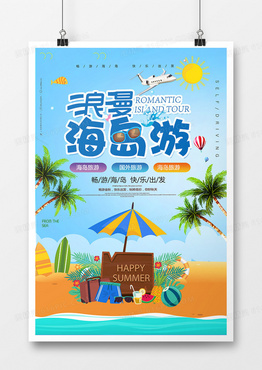 一组手绘彩色缤纷夏日海滩合集装饰元素