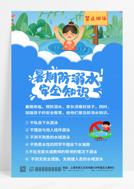 蓝色暑期防溺水知识元素蓝色渐变海报设计