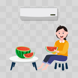 吹风扇的小女孩吃西瓜夏日消暑免抠元素