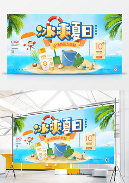 冰爽夏日创意宣传展板模板设计