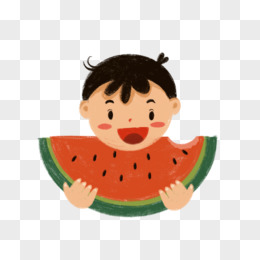 卡通夏天女孩坐在荷叶上吃西瓜创意元素