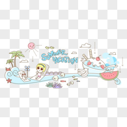 手绘夏天女孩吃西瓜冰沙微场景元素