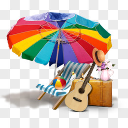 夏天之手绘卡通沙滩椰子树沙滩椅